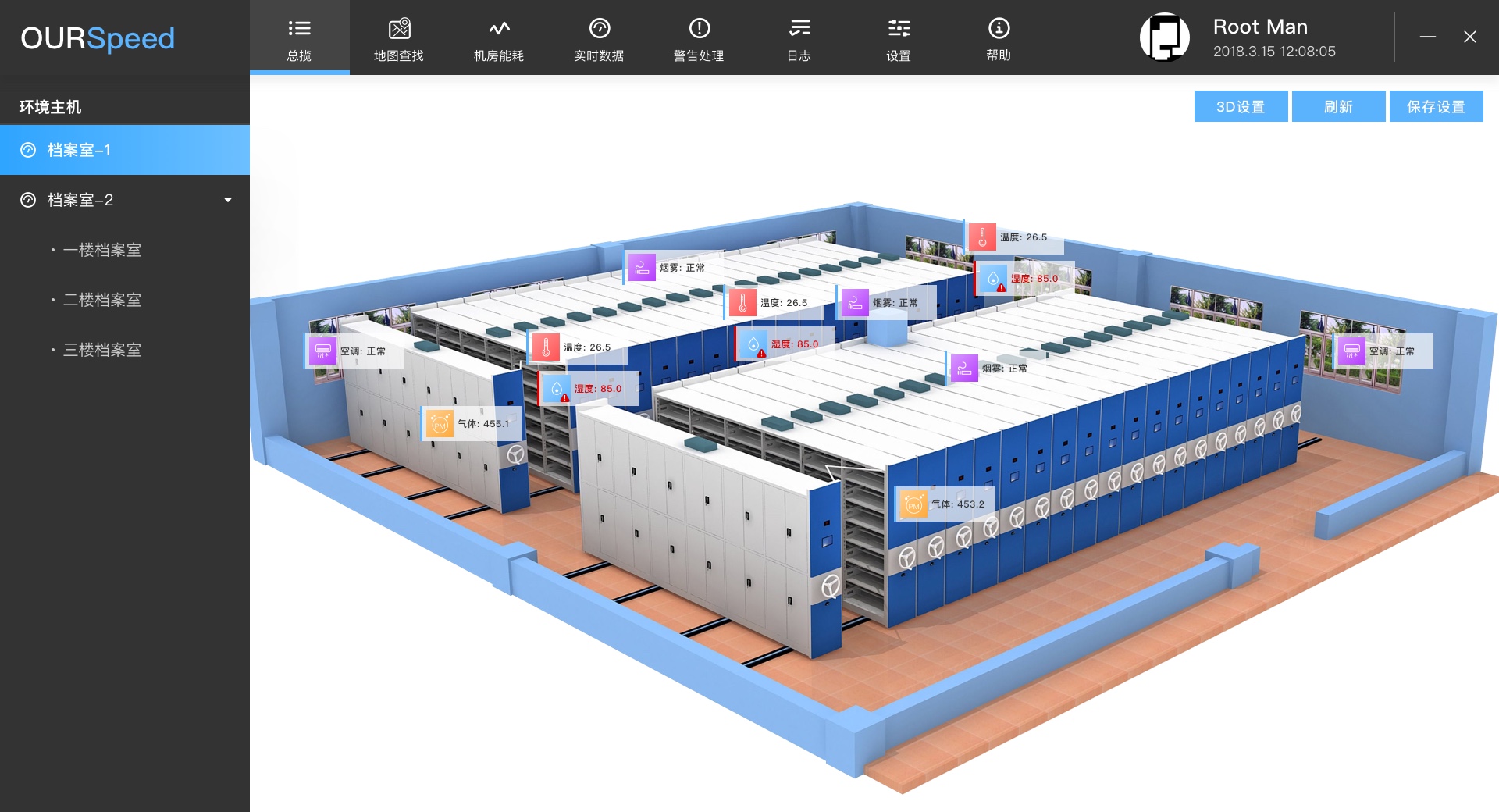 2024年3月接某档案室动力环境监控工程需求,其档案室分文件存档和数字化存档等区域,总面积约200方,需要监控其温湿度、消防、防盗、漏水、UPS、空调等。